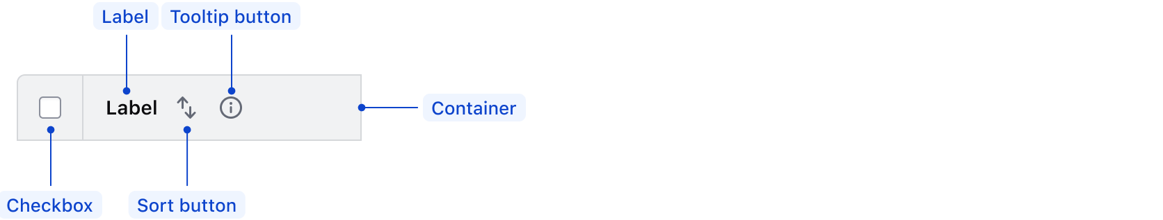 - The label should clearly indicate what type of content is contained within the cell (string, number, status, etc).
